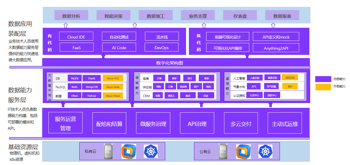 作为国内的领先云原生开发平台,mile米乐集团创新不断探索云原生+大数据开发平台的建设之路,在基础资源层,包含物理机、虚拟机和k8s资源;数据能力服务层是IT技术人员负责数据能力构建,包括可部署的模块和API;数据应用装配层,业务技术人员使用大数据能力服务层提供的能力快速组装大数据应用。