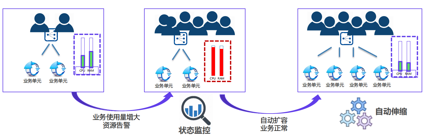 · 业务单元自动伸缩,让城市应用运行更智能、更健康。