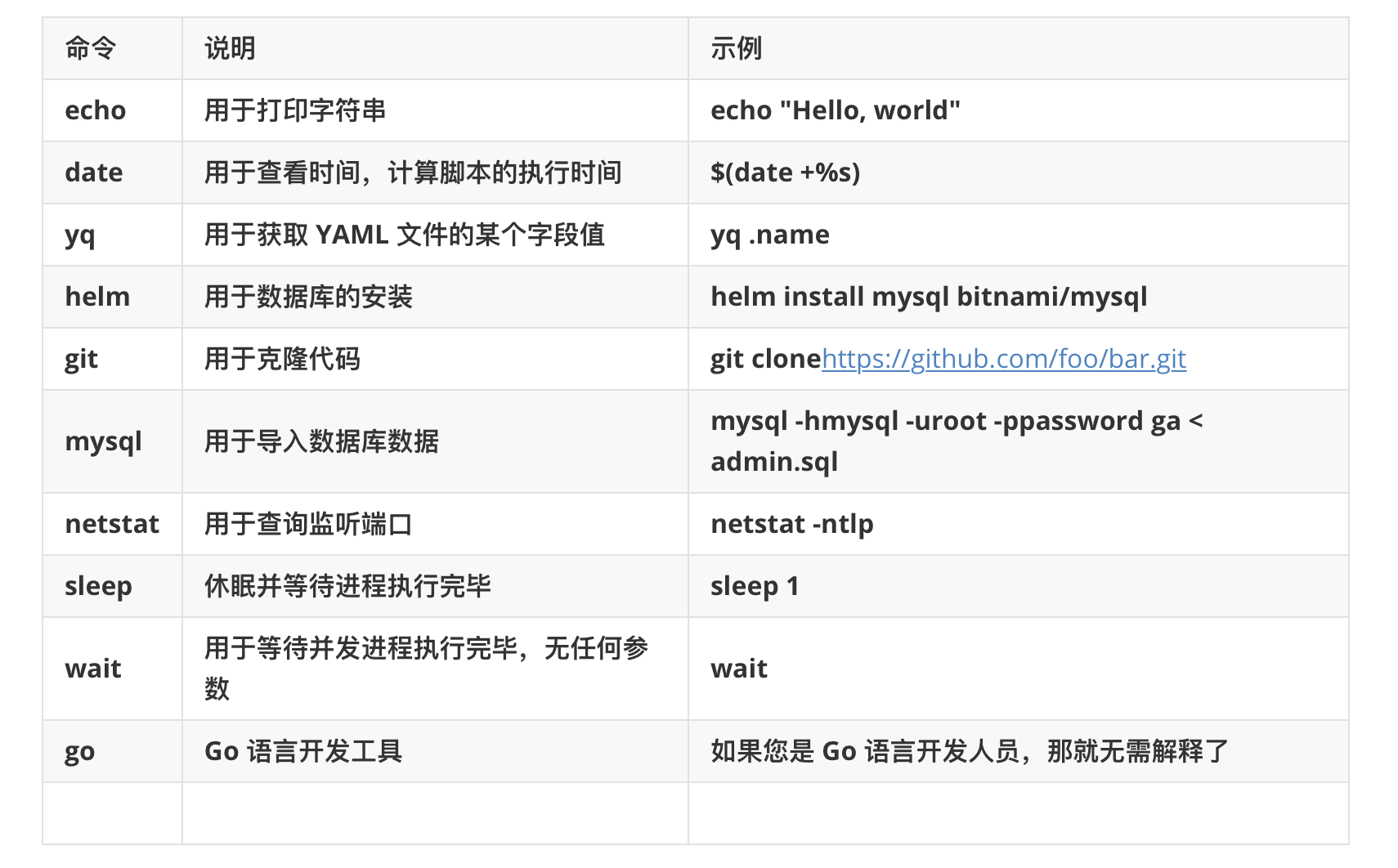 根据 Go Admin 对中间件服务和开发工具的依赖,整个脚本分为以下几个部分: