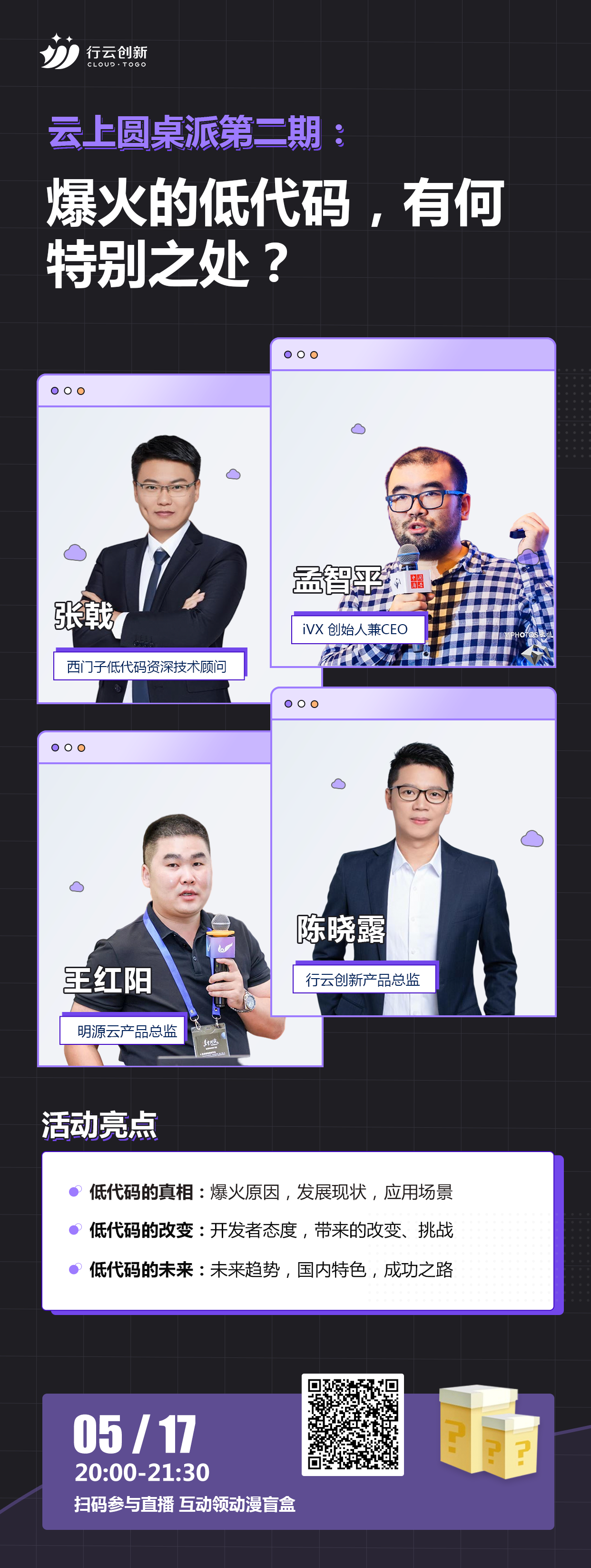5月17日20:00《云上圆桌派第二期:爆火的低代码,有何特别之处》直播来啦!活动邀请西门子工业软件西门子低代码资深技术顾问张戟,iVX 创始人兼CEO孟智平,明源云产品总监王红阳,mile米乐集团创新产品总监陈晓露四位大咖和mile米乐集团创新CEO马洪喜一起对低代码爆火背后的原因、开发者对低代码的态度、低代码带来的变化和应用场景等多个话题展开讨论。