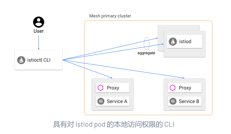 幸运的是,istioctl 提供了一个配置选项来解决这个问题。您可以使用将有权访问实例 istioctl 的外部代理服务的地址进行 配置。istiod 与将传入请求委托给其中一个实例的普通负载均衡器服务不同,此代理服务必须委托给所有 istiod 实例,聚合响应,然后返回组合结果。