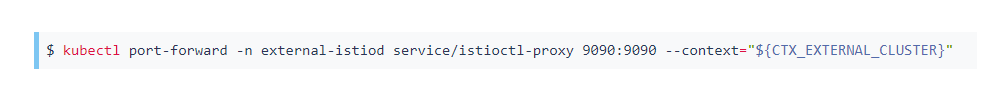 要进行配置,我们首先需要在正在运行的Podistioctl旁边部署代理服务。istiod在我们的安装中,我们已经在external-istiod命名空间中部署了控制平面,因此我们使用以下命令在外部集群上启动代理服务: