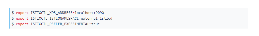 我们现在通过设置环境变量来配置istioctl用于localhost:9090访问代理:ISTIOCTL_XDS_ADDRESS
